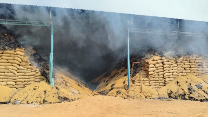 सारंगढ़ । शहर से 6 किमी दूर कटेली रोड पर स्थित केजरी राइस मिल में भीषण आग लगने से हड़कंप मच गया है । मिल परिसर में रखे हजारों क्विंटल धान आग की चपेट में आ गए हैं, जिस से भारी नुकसान की आशंका जताई जा रही है।