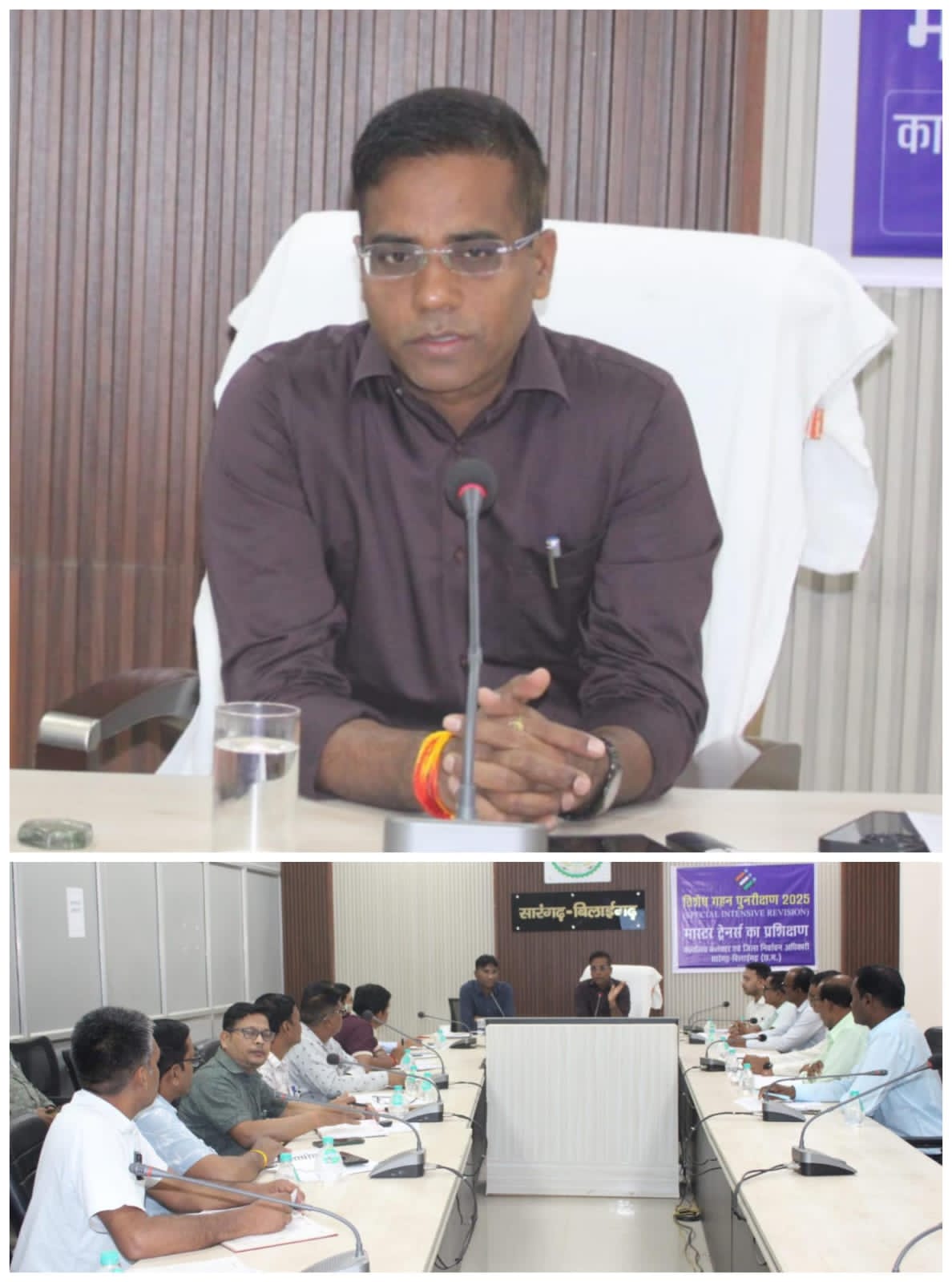 सारंगढ़ बिलाईगढ़।भारत निर्वाचन आयोग द्वारा चलाए जा रहे विशेष गहन पुनरीक्षण (एसआईआर) के मद्देनजर कलेक्टर एवं जिला निर्वाचन अधिकारी की अध्यक्षता में कलेक्टोरेट सभाकक्ष में प्रशिक्षण कार्यक्रम आयोजित किया गया। जिले के जिला निर्वाचन मास्टर ट्रेनर द्वारा सारंगढ़, बरमकेला और बिलाईगढ़ ब्लॉक के निर्वाचन मास्टर ट्रेनर को प्रशिक्षण दिया गया। इस अवसर पर अपर कलेक्टर एवं उप जिला निर्वाचन अधिकारी प्रकाश सर्वे, निर्वाचन पर्यवेक्षक हरिकिशन डनसेना, कुंजबिहारी गहरे आदि उपस्थित थे।