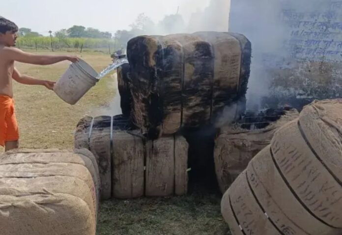 जांजगीर-चांपा में 40 गठान बारदाना जलकर राख: