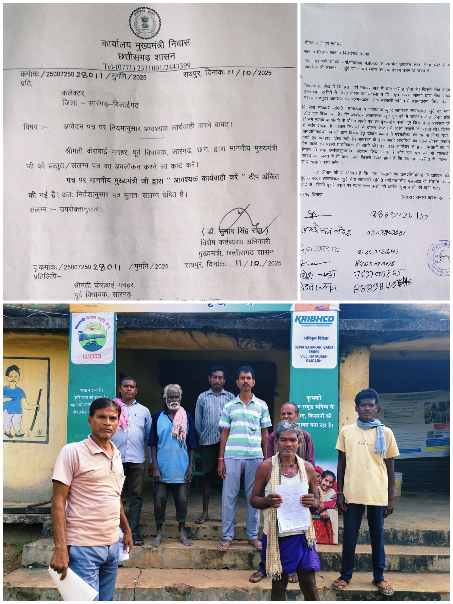 ग्रामीणों ने आरोप लगाते हुए कहा कि सारंगढ़ पूर्व विधायक श्रीमती केराबाई मनहर के द्वारा माननीय मुख्यमत्री विष्णुदेव साथ को पत्र क्रमांक 2025-28 / 79 के माध्यम से सेवा सहकारी समिति गाताडीह के समिति प्रबंधक (नवीन संवर्ग) श्री शैलेष कुमाऱ चंद्रा के बारे मे अपने निजी रिश्तेदार लखनलाल खुटे को लाभ प्रदान करने के नियत से झूठा एवं मनगढ़त शिकायत दर्ज कराया गया है।